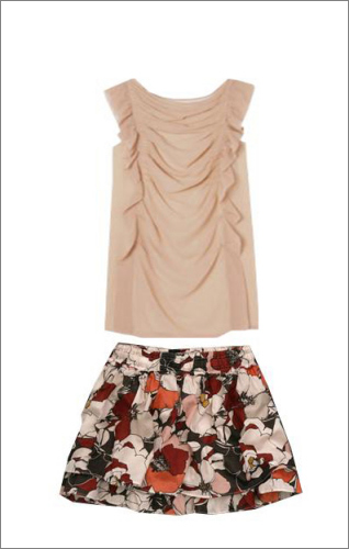 時(shí)尚解析:褶皺上衣面料非常舒服清涼,純色系上衣搭配印花短裙,有點(diǎn)古典的味道色彩和諧很有女人味。