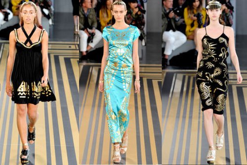 Topshop Unique 的古埃及風是吹定了,經典的黑金搭配和民族感極為明顯的象形文字印花圖案,都仿佛神秘的埃及艷后和古老的斯芬克斯在講述著神秘的傳說。