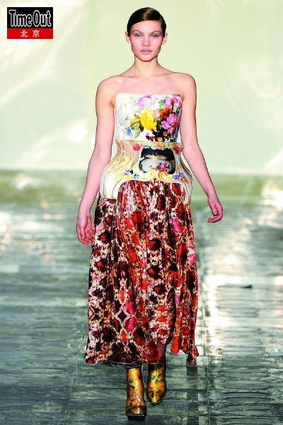 春夏季的印花還是收起來吧,雪紡、喬其紗上的薄透印花不是我們現在要說的。本季采用了三維數碼技術的印花,色彩和圖案都會更加清晰、立體、富有表現力,就像絲巾上的圖案一樣栩栩如生。倫敦的設計新秀Mary Katrantzou的靈感來源于景德鎮(zhèn)瓷器的圖案,在燈罩形的短裙上,筆觸細膩、華麗,帶著濃濃的東方特色。Comme des Gar?ons這一季干脆直接把川久保玲珍藏了一生的絲巾,直接纏繞、連接成了具有立體輪廓和垂墜感的裙子,視覺沖擊強烈。