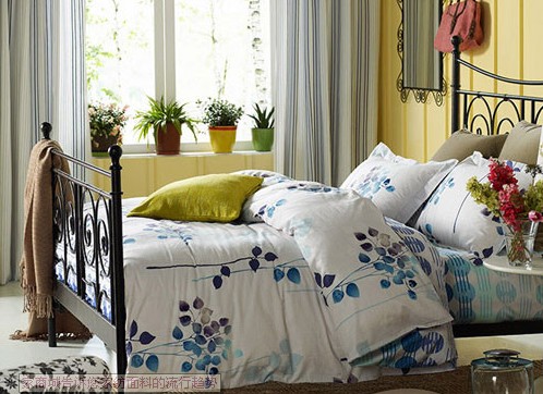 五、抗菌性家紡面料 具有抗菌功能的紡織面料對(duì)于防止病菌的侵害起著極其重要的作用,用抗菌功能性紡織面料制作的日用品已逐漸為人們所重視,并隨著科技的發(fā)展,廣泛而深入地輻射到生活的細(xì)節(jié)中。如使用由防螨抗菌纖維制成的紡織品和家居用品,不僅可以抑螨、驅(qū)螨,有效防止與塵螨有關(guān)皮膚病的發(fā)生,還可以抗菌、抑制細(xì)菌的繁殖,從而達(dá)到改善人們生活環(huán)境的目的?咕约矣眉徔椘房梢酝ㄟ^(guò)在織物上進(jìn)行涂層或樹(shù)脂處理等后整理得到,天然純紡織物常用這種后整理技術(shù)。也可以將抗菌劑添加入纖維原液進(jìn)行共混紡絲,或?qū)⑵胀ɡw維接枝抗菌劑制得抗菌纖維,再將抗菌纖維進(jìn)行織造,即得抗菌性家用紡織品。目前廣泛應(yīng)用的抗菌產(chǎn)品有被褥、絮棉、床單、毛巾、毛巾被、棉毯、地毯、浴衣、抹布、沙發(fā)布、墻布、墩布、桌布、餐巾、浴簾、床品四件套等。