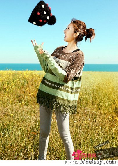 隨性自在是這件YY給人最直觀的感受,小鹿圖案能成為民族風的經(jīng)典代表自然有它的理由——耐看又可愛。大地色系的配色親和度高,流蘇下擺增添趣味,搭配一條緊身legging,讓你在這個秋冬兼具時尚與可愛。
