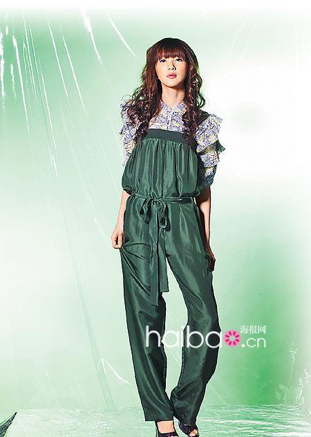 袖子綴以荷葉邊的印花襯衫,搭配春夏流行的平口連身褲,腰部以鬆緊設(shè)計,美化腰部曲線。整體造型再手挽美人魚圖桉包,妝容部分配以裸色系唇蜜,為春夏帶來清新柔美感。