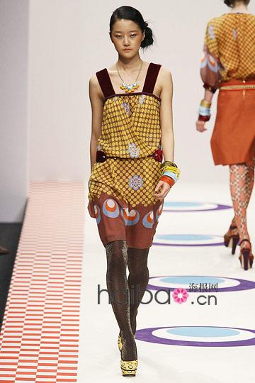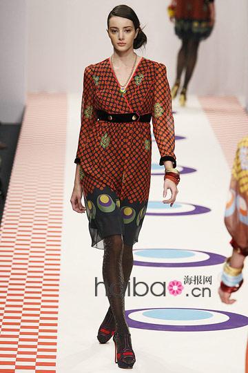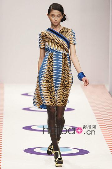 設計師夫妻檔品牌艾雷岸本 (Eley Kishimoto) 一向以經(jīng)典印花為代表性元素,鮮艷的色系,繁復的印花成不規(guī)則的排列狀,清爽而不黏膩。艾雷岸本 (Eley Kishimoto) 2009秋季女裝成衣系列以絲綢禮服裝扮以及印花襯衫為代表,加上各色復古味十足的配飾,如帽子、手袋以及彩襪,趕快來嘗一嘗一場印花圖案的大餐吧~