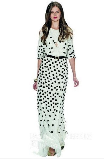 復(fù)古風(fēng)格的規(guī)則波點(diǎn)開始變得更多元化,保留了俏皮的一面,兒童簡筆畫般的筆觸隨意灑下,色彩跳躍,涂鴉式的生動(dòng)藝術(shù)感或是波普風(fēng)格的有序排列各有千秋。飄逸的裙裝似乎更愛波點(diǎn),不見了優(yōu)雅的淑女襯衫或是鉛筆裙,取而代之的是松散的裙擺和花苞袖上衣。