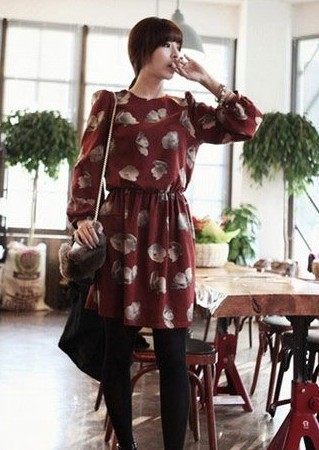 小編點(diǎn)評(píng):席卷時(shí)尚界已久的復(fù)古風(fēng)至今仍舊沒有退去,選擇像這樣一款酒紅色印花連衣裙就顯得十分必要了,可以混搭各種材質(zhì)的黑色外套,懷舊氣息呼之欲出。