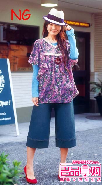 OUT:印花與開襟衫都是初春的大熱單品,單穿開衫與T恤的混搭可以把女孩子的俏皮可愛充分顯露,但是配上同色系稍顯沉悶的長(zhǎng)裙,最雷人的是那紫色的褲襪和帆布鞋,亂穿混搭是日系MM最喜歡的方式,可是你已經(jīng)不是小女生了,那就只能用土里土氣來(lái)形容了!
