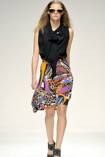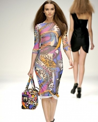 【集萃網(wǎng)觀察】色彩斑斕的數(shù)碼印染混合了動物和馬賽克的幾何圖案,具有強烈的八十年代風格(特別是搭配一條金色的綢緞長褲)。整場秀值得稱贊的地方就是“日光浴”。只要任何人都可以記住它,這就是時裝秀第一應(yīng)該注意的。