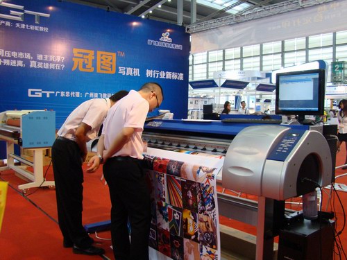 圖為捷飛數(shù)碼科技有限公司代理的冠圖戶內(nèi)外寫真機(jī)。據(jù)了解,此機(jī)性能卓越、可以長(zhǎng)時(shí)間穩(wěn)定打印。