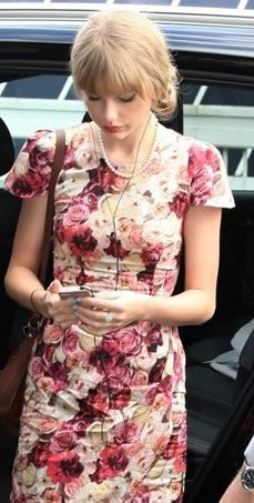 【集萃網(wǎng)觀察】英國小天后泰勒穿著色彩繽紛的印花連衣裙,甜蜜可愛。慵懶的盤起頭發(fā),很有東方復(fù)古的味道,搭配紫紅色的平底鞋,大秀美腿,性感又時尚。