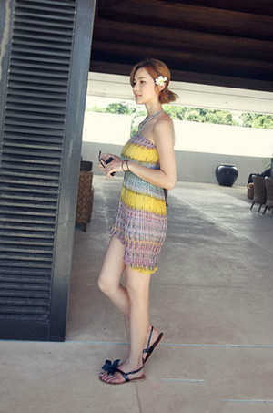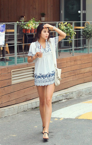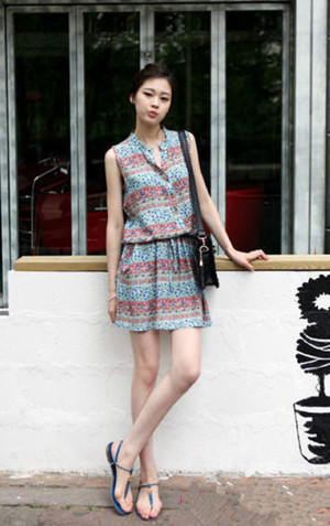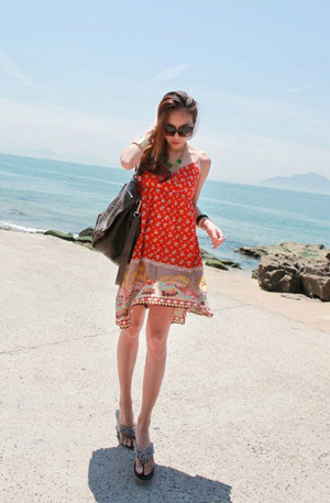紅色替頂色,白色、黃色和綠色所組成的花卉圖案,給連衣裙一種海邊的風(fēng)格,十分的特殊,民族風(fēng)裙子里面常見的一種作風(fēng)!$$分頁$$