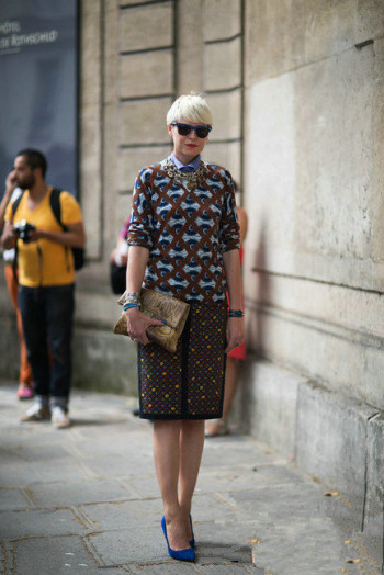 街拍:印花狂的活力早秋 熟女單品時髦搭