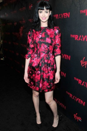 美國(guó)女星Krysten Ritter一身黑底印紅花連衣裙出席某活動(dòng),色彩上倒是跟背景墻非常搭調(diào)。$$分頁(yè)$$