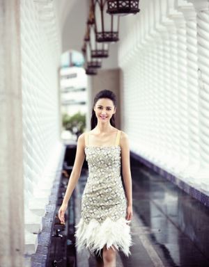 高端而素雅的印花,裙擺的純白羽毛流蘇裙擺,夢(mèng)幻而貴氣。