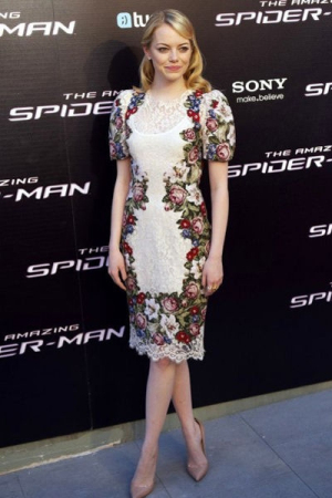 Emma Stone的這件白色蕾絲印花裙,很有3,40年代的復(fù)古質(zhì)感,優(yōu)雅女人味。$$分頁(yè)$$
