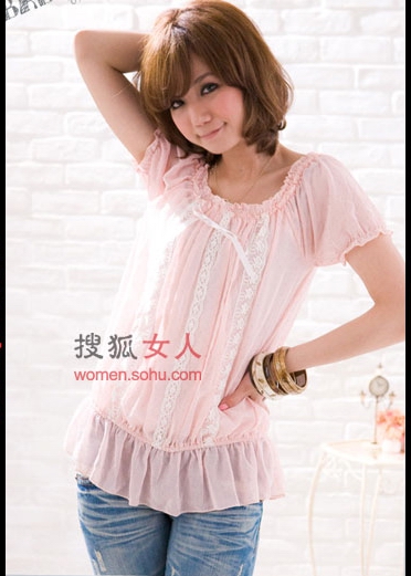搭配建議:今年春夏季必?cái)〉暮扇~滾邊短袖蕾絲罩衫,運(yùn)用了特別的寬松式剪裁,四周的荷葉滾邊設(shè)計(jì),更是增添了飄逸感;領(lǐng)口處的布蕾絲裝飾,增添了優(yōu)雅氣質(zhì)。