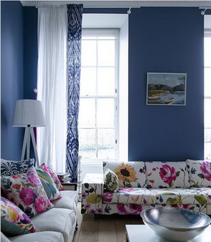 客廳里的木質(zhì)地板給人清新自在,與世無爭的感覺;而飽和度較高的藍(lán)色墻面也是納維亞風(fēng)格的傳統(tǒng)色彩。此外,艷麗的花朵圖案遮蓋了沙發(fā)本身普通的四方造型,彩色印花同樣是其風(fēng)格運(yùn)用中的經(jīng)典元素。
