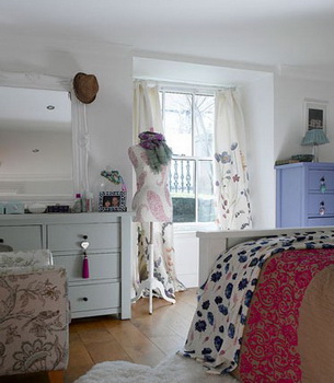 經(jīng)過色彩粉飾后的實木家具,搭配各種大花朵圖案的床品靠包等,恰到好處地還原了一種鄉(xiāng)村田野的質(zhì)樸風(fēng)情,讓整個臥室都散發(fā)出自然的清香和光澤。