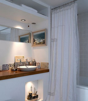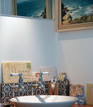 原木材質(zhì)的洗臺盆面在視覺上給人一種原始自然的感覺,角落里放置的手寫信箋表達(dá)出戶主安然自得的生活態(tài)度,與整體的納維亞家居風(fēng)格相映成趣。