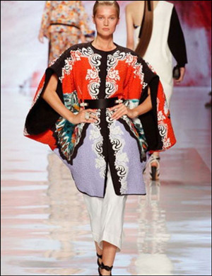 【集萃網(wǎng)觀(guān)察】Etro一直以來(lái)總是帶有一種托斯卡納風(fēng)情,熱烈的印花與海洋氣息。但當(dāng)音樂(lè)響起,模特從花朵畫(huà)片中走出,卻展現(xiàn)出和以往截然不同的趣味:模特都束著馬尾,用緞帶系起,宛如日本道場(chǎng)的巫女這一季,它將東方風(fēng)格的花卉圖案、雀鳥(niǎo)、蝴蝶、仙鶴融進(jìn)了土耳其長(zhǎng)袍中。 Etro一直以來(lái)總是帶有一種托斯卡納風(fēng)情,熱烈的印花與海洋氣息。但當(dāng)音樂(lè)響起,模特從花朵畫(huà)片中走出,卻展現(xiàn)出和以往截然不同的趣味:模特都束著馬尾,用緞帶系起,宛如日本道場(chǎng)的巫女這一季,它將東方風(fēng)格的花卉圖案、雀鳥(niǎo)、蝴蝶、仙鶴融進(jìn)了土耳其長(zhǎng)袍中,又用日式的束腰帶加以點(diǎn)綴。