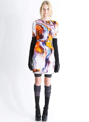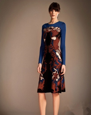 這華麗而帶點神秘氣息的印花襯托得人更加艷麗迷人,拼布式袖子又能給人以禮裙的端莊優(yōu)雅感,因此適穿于任何較為正式的場合。