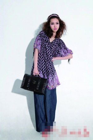 傳統(tǒng)喇叭褲套裝特有的“高喇叭褲”,是指喇叭始于大腿處且喇叭幅度較小的褲型!袄取钡募舨每伤苄苑浅姡筛鶕(jù)面料與細(xì)節(jié)的異同進(jìn)行一年四季的循環(huán)。本季,聯(lián)袂紅得發(fā)紫的真絲、雪紡面料的維多利亞式碎花襯衫吧!通透飄逸的see-through look搭配復(fù)古牛仔喇叭褲,大顯優(yōu)雅Mix高街的城市新格調(diào)。