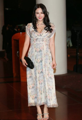 袁立的低V高叉印花長(zhǎng)裙$$分頁(yè)$$