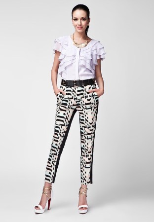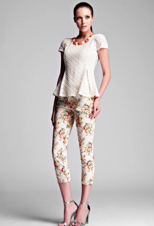藍花綠葉配白褲清新淡雅,充滿了原野的氣息。貼身款型又讓曲線畢露。$$分頁$$