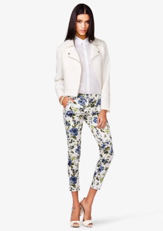 這款大花養(yǎng)眼且時髦,修身版型也令雙腿顯修長,腰間搭配細皮帶明星范十足。