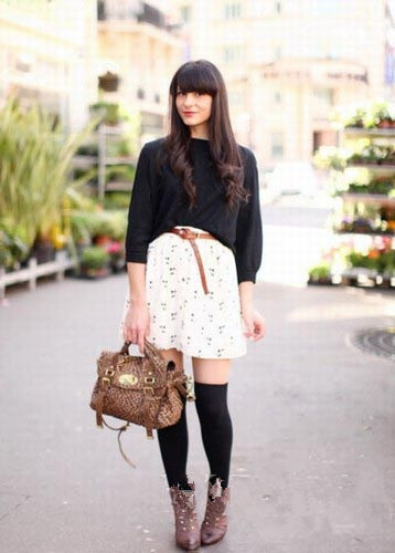 短裙、靴子、絲襪齊出動,與夏天的印花裙,T恤,混搭疊穿是潮人們的最愛!除了演繹出灑脫不羈的女性氣質(zhì),有型的機車包是平衡甜美LOOK的至IN法寶。
