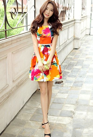 大朵的印花是不是超級吸睛呢!很浪漫的顏色搭配,收腰的連衣裙更顯MM性感小蠻腰,簡約的黑色涼鞋,自然曲卷的秀發(fā),很是有御姐氣質(zhì)的裝扮。