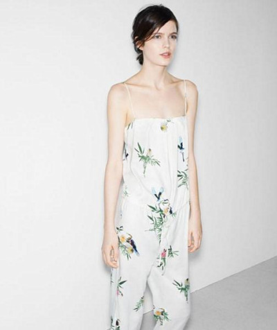 【集萃網(wǎng)觀察】Zara副線TRF近日釋出6月份的全新清爽印花系列,說(shuō)到印花,近幾年流行的鮮艷夸張的大印花似乎又退到“庸俗”的范疇了。而TRF為了迎接炎炎夏日,推出專屬的清新印花系列。淡雅的色彩和大面積的白色一起搭配,洋溢著夏季獨(dú)有的舒適和清涼感。其中一條綠色長(zhǎng)尖葉子的印花吊帶連體褲更是充滿東方白描意會(huì),令人倍感清涼。