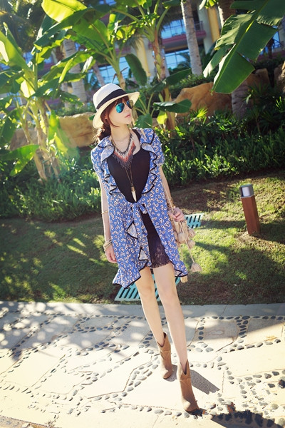 【集萃網(wǎng)觀察】 優(yōu)雅十足的連衣裙呢,清涼的雪紡面料,舒適透氣,性感十足的深v設(shè)計(jì),內(nèi)搭上裹胸就不會(huì)走光了,民族風(fēng)味道十足的扎染印花,浪漫唯美,優(yōu)雅大方,收腰的款式更顯腰身,再加上項(xiàng)鏈配飾,真是很有名媛氣質(zhì)呢!