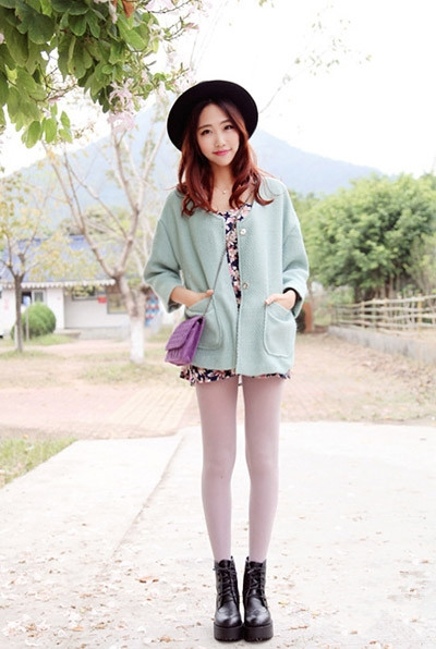 粉紅色印花連衣裙俏皮可愛(ài),外搭一款薄荷綠色毛呢外套,溫暖又時(shí)髦。下身白色絲襪的搭配將美眉纖細(xì)而修長(zhǎng)的美腿襯托的筆直而勻稱,搭配黑色松糕鞋子和香芋紫斜挎包包,清新迷人的裝扮哦!