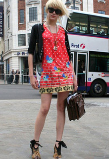 潮女蔡依林在裝扮上幾乎沒有讓人失望過,深得日本潮流天后濱崎步穿衣精髓的她裝扮都以日韓范兒為主,這一點(diǎn)與她不是很高挑的身材也有關(guān)系,可愛中又帶有個(gè)性化的裝扮最適合她了。星星印花的長衫和夸張的大墨鏡打造出搶眼的明星氣勢。