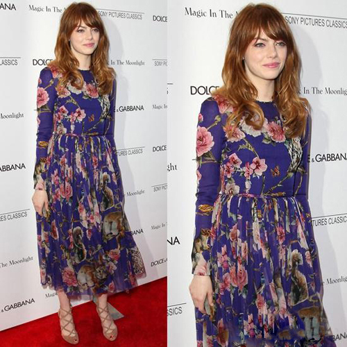 凱特·波茨沃斯 (Kate Bosworth)親身示范,如何將印花裙穿出優(yōu)雅與清新,綠葉與紫色的花瓣覆蓋在潔白的裙身上,一塵不染的潔凈,搭配一雙紅色綁帶尖頭高跟,極致的女人優(yōu)雅散發(fā)而來。