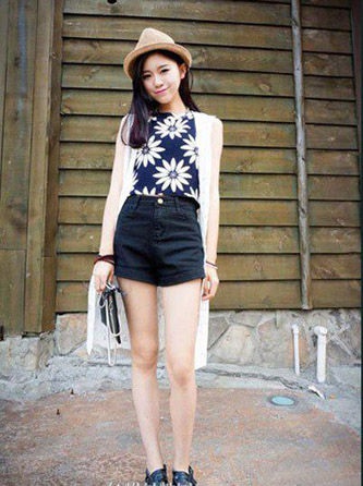 雛菊短款上衣搭配高腰小短裙
