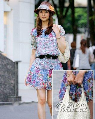 以粉藍(lán)x粉紅為配色基調(diào)的小碎花印花連衣裙,特別適合皮膚白皙、喜歡田園淑女感的MM。不過(guò)這款搭配在田園味道的連衣裙基礎(chǔ)上混搭了時(shí)尚味十足的黑腰帶和咖啡色角斗士風(fēng)格涼鞋,立刻告別“村姑”形象,時(shí)尚輕熟女的造型在街頭回頭率100%。