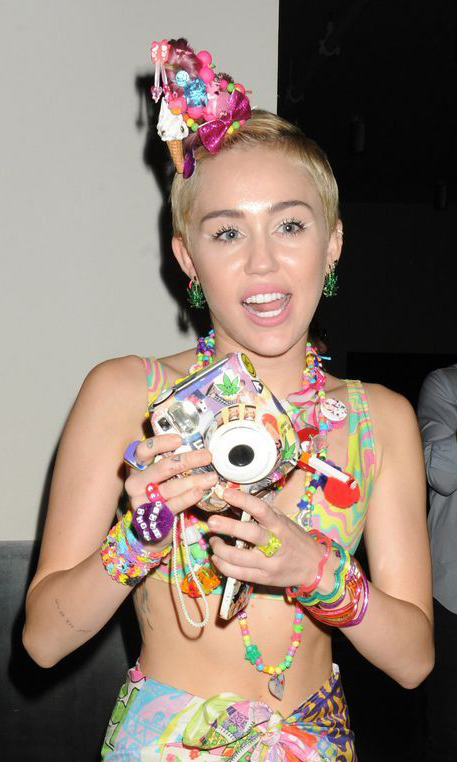 麥莉瘋狂印花裝助陣Jeremy Scott秀場 又無下限吐舌