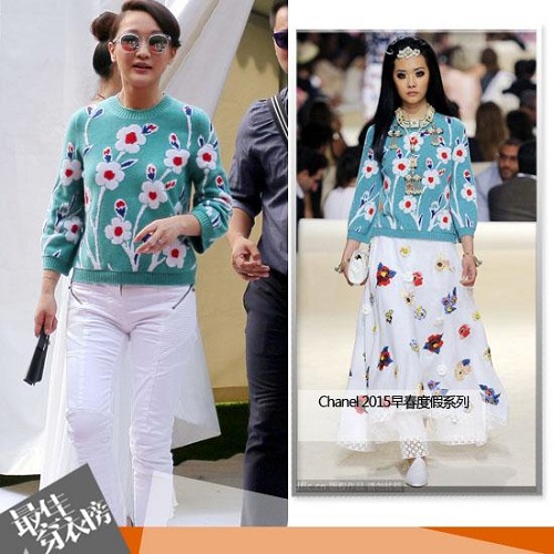 【集萃網(wǎng)觀察】超模伊麗莎-瑟娜薇(Elisa Sednaoui)身穿Chanel 2015早春度假系列出席巴黎2015春夏時(shí)裝周Chanel專(zhuān)場(chǎng)秀,與周迅撞衫。
