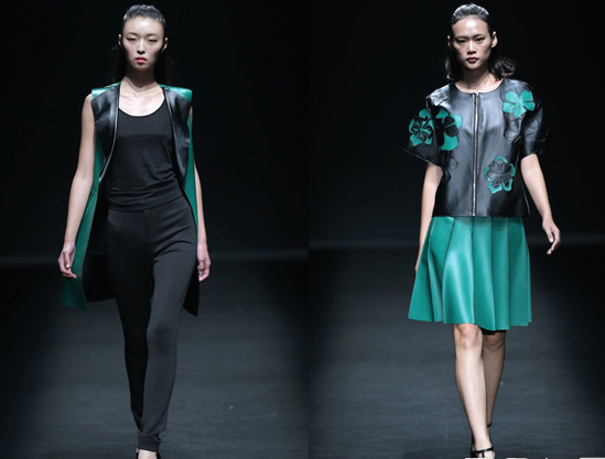 王沛沂總是能給人帶來驚喜,普通的面料經(jīng)過他的手,總是能散發(fā)一種低調(diào)的奢華感。利落的剪裁方式與設(shè)計讓皮革也能飄逸,特別上在皮革上雕刻出花朵,好似剪紙一般的細(xì)節(jié)設(shè)計更讓人稱贊。