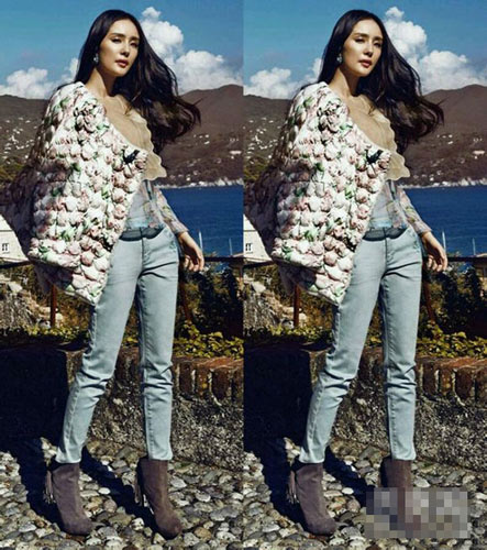 這款印花外套,立體花朵裝飾,穿在身上繽紛動(dòng)人,有種復(fù)古典雅的氣質(zhì),內(nèi)搭打底衫,下穿緊身牛仔褲和高跟短靴,散發(fā)著優(yōu)雅女人味,也是秋天很流行的裝扮。