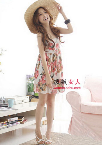 時(shí)尚解析:碎花裙甜美可人,特別適合喜歡甜美活潑風(fēng)格的花樣少女們,走在海灘上好像一只甜蜜蜜的草莓冰激凌一般誘人。打造俏皮甜美造型的關(guān)鍵在于選擇長(zhǎng)度在膝蓋上的裙款,清涼無(wú)限Sweet無(wú)限!