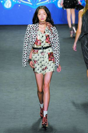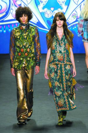 本季,T臺上的Anna Sui讓人們回想起上世紀(jì)六七十年代的時尚繆斯Anita Pallenberg和Nigel Weymouth為迷幻搖滾樂隊(duì)設(shè)計(jì)的海報(bào);而Just Cavalli的呈現(xiàn)則避開一貫狂野不羈的搖滾風(fēng)格,用鏈條圖案、雛菊和心形圖案的堆疊,包裹出一位嬉皮少女。
