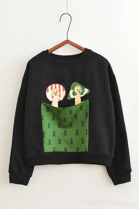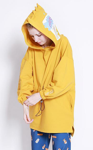 童趣小人圖案衛(wèi)衣。兩個小伙伴趟床上睡覺覺,蓋上綠色的小花被子,萌萌噠。被子是個大口袋哦,超有創(chuàng)意的。這款較厚實。