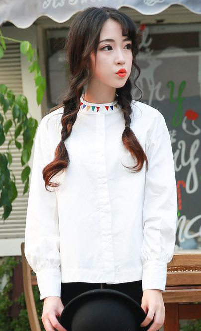 特別小清新的一款襯衫,圍繞領(lǐng)子一圈的三角刺繡別具一格吧 白色也是很好看的哦!