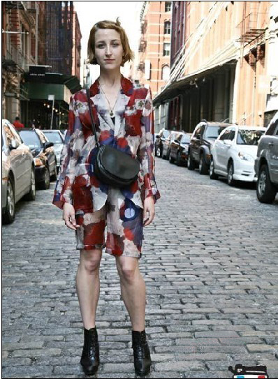 抽象水彩畫一般的印花連衣裙,款式非常old style,達(dá)人搭配的菲常完美。