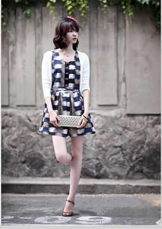 色塊圖案連衣裙嫻靜雅致,白色針織外套讓溫柔的感覺加倍散發(fā)。搭配素色高跟涼鞋,輕松表達安靜又高雅的感覺。連衣裙太花的嫌鬧,太素的又沒有特色。這款三色裙宛如三色堇一般美麗,是OL們千萬不能錯過的單品!