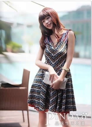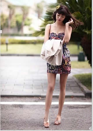 深色抹胸式印花連衣裙是身材豐滿的MM的好選擇,無修身的裁剪可以很好突出胸部曲線。抹胸的設計給你小公主的感覺,上身搭配一件白色的罩衫,加強收斂上身的視覺效果。實在是豐滿MM的上好搭配選擇哦!