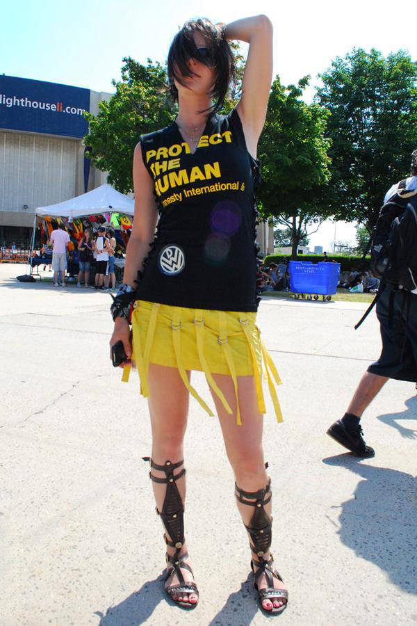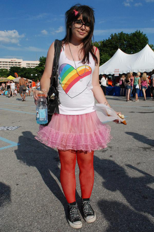 原來豹紋也是可以很絢麗的!熒光色的窄管褲和手鐲搭配不多不少恰到好處!