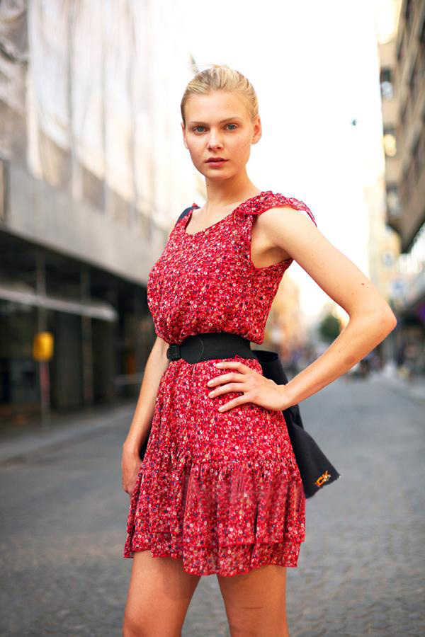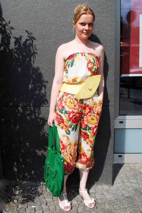 抹胸連身褲因為大大的牡丹印花而變得有了點中國味道,加上足夠特別的寬腰封,想不被注意都難!